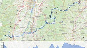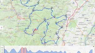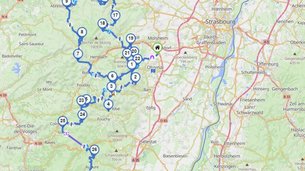 | Verlauf: | Rosheim (FR) - Kloster Hohenburg / Breitenbach / Col de la Charbonnière/ KZ Natzweiler-Struthof / Schirmeck / Col du Donon / Col de la Côte de l'Engin / Saint Leon / Haselbourg / Saverne / Ruines du Nideck / Col Haut de Ribeauvillé / Orbey / Labaroche |