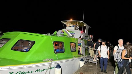 Auf der Fähre waren nur wenige Touristen unterwegs. Die meisten Passagiere waren Einheimische, die regelmäßig zwischen dem Festland und ihrem Arbeitsplatz auf der Insel pendeln. Die Atmosphäre an Bord war dementsprechend authentisch und unverfälscht: Die stickige Luft vermischte sich mit dem Geruch von Diesel und Meerwasser, während draußen die Wellen unaufhörlich gegen den Bootsrumpf schlugen. Der begrenzte Platz, das ständige Schwanken des Boots und die besondere Stimmung machten die Überfahrt zu einem kleinen, aber unvergesslichen Abenteuer, das uns noch lange in Erinnerung bleiben wird.
